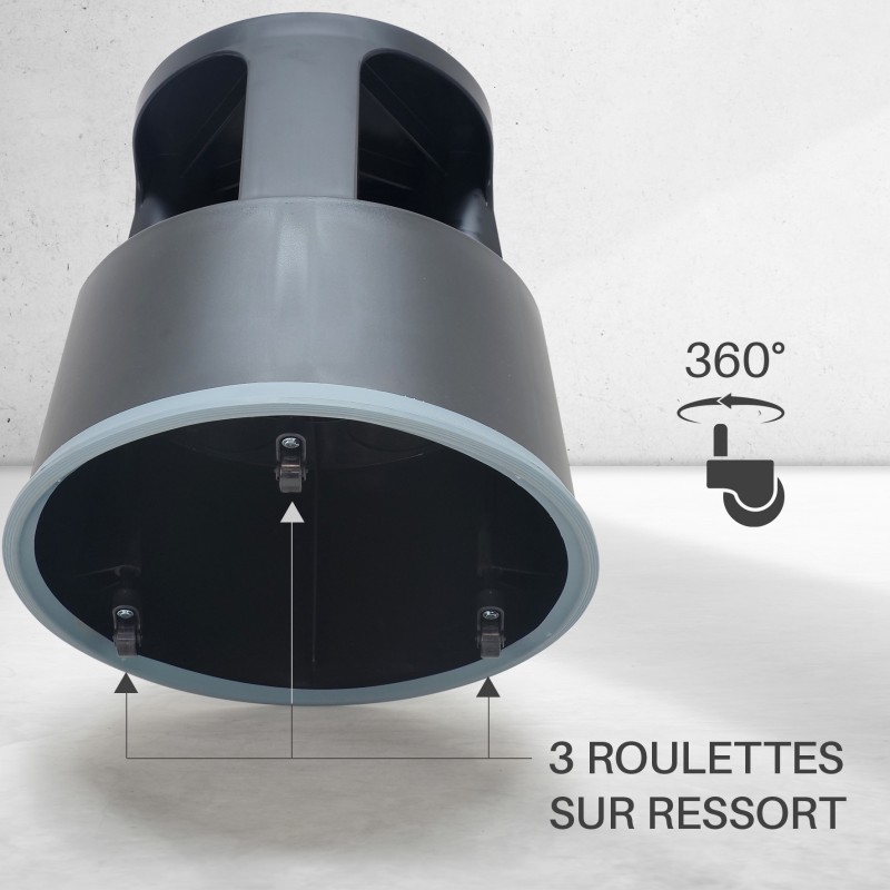 - 3 roulettes pivotantes sur ressorts