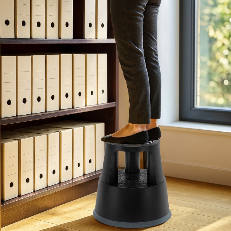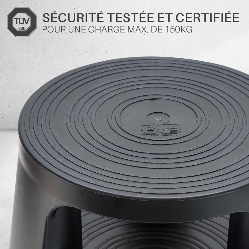 Lot de 5 Tabourets marches pieds mobiles 3 roulettes Hauteur 43 cm plastique Noir