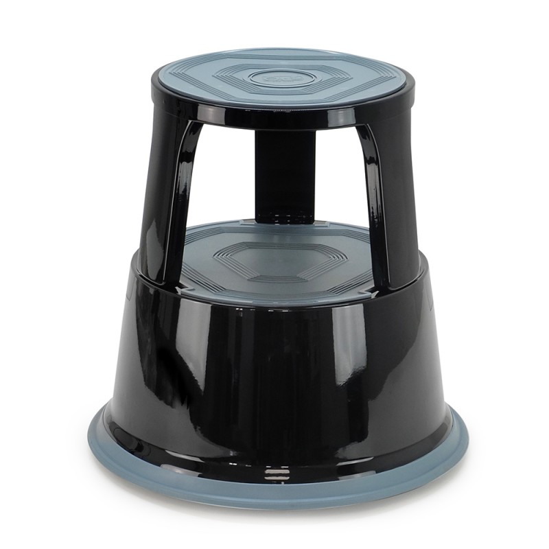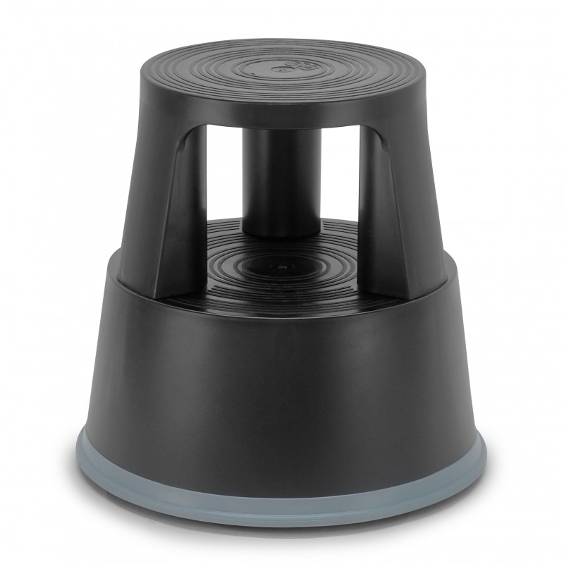 Lot de 5 Tabourets marches pieds mobiles 3 roulettes Hauteur 43 cm plastique Noir