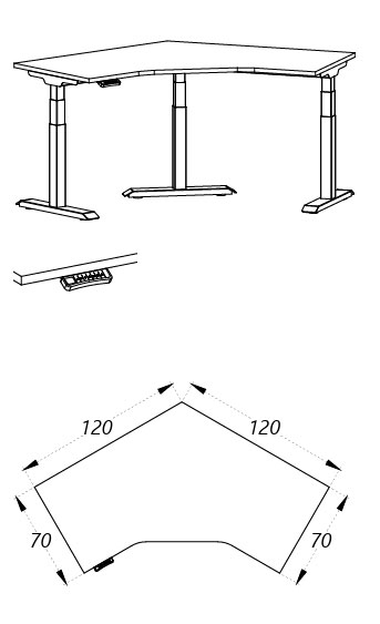 Pieds réglables électriquement en hauteur avec un réglage d’un minimum de 65 cm au maximum de 125 cm en 3 étapes par un clavier numérique avec 4 mémoires de position