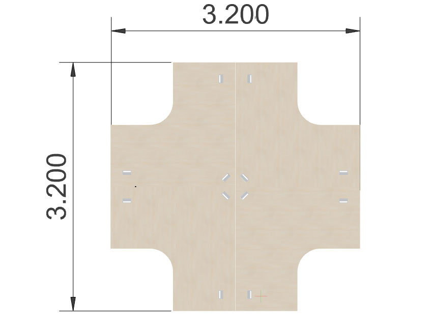 4 Postes compacts 90° symétriques 160 x 160 x 80 cm