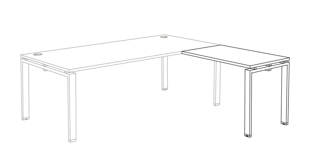 La liaison bureau et console B-box se fait grâce à un pied arche raccourci (H 10 cm) afin que le meuble de service s’intègre parfaitement à la structure du bureau