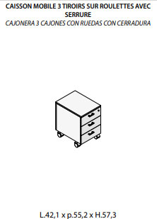 Avec caisson sur roulettes 3 tiroirs L 42,1 x P 55,2 x H 57,3 cm