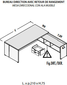 Bureau de Direction DELTA avec Retour sur Crédence 2 Tiroirs