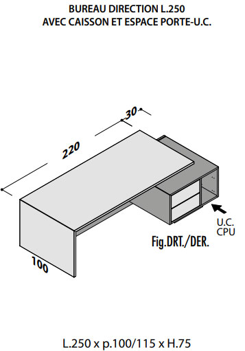 Bureau de Direction ELITE avec grand caisson porteur à droite ou à gauche (Photo : Caisson à droite)