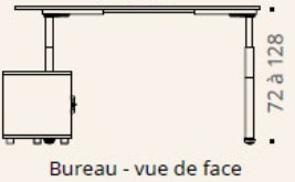 Hauteur des plateaux réglable électriquement de H 72 à H 128 cm