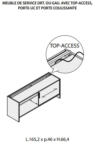 1 Crédence à droite ou à gauche: L 165,2 x P 46 x H 66,4 cm avec panneau pour passage de câbles (Goulotte horizontale comprise)
