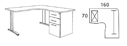 1 Caisson Hauteur Bureau Profondeur 60 cm 3 tiroirs dont 1 pour Dossiers Suspendus, plumier inclus