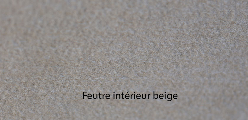 Base : Contreplaqué massif 25+9mm + pieds de nivellement 25mm + moquette polyester