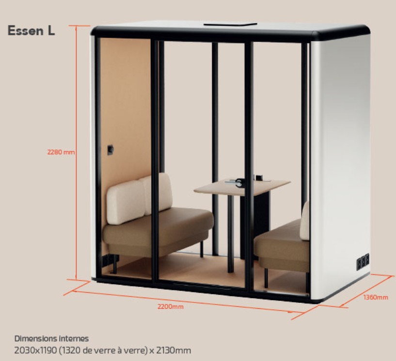 Cabine Acoustique ESSEN L avec Banquettes et Table