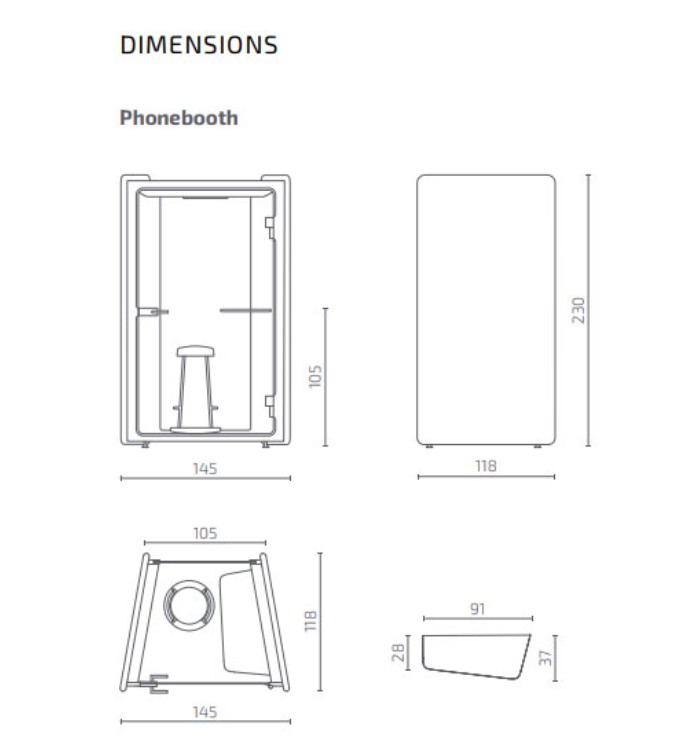 Cabine Acoustique Triangulaire Fermée INTUIT BOOTH 2 Vitres avec Tabouret Inclinable
