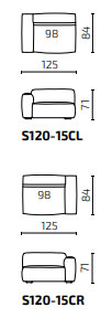 1 Module 1,5 places Gauche avec Dossier L 125 x P 84 x H 71 cm (Assise : L 98 x P 58 x H 37 cm)