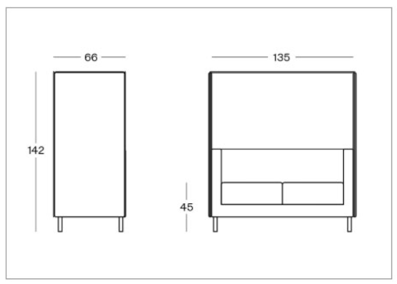 Dimensions : L 135 x P 66 x H 142 cm (hauteur d'assise 45 cm)