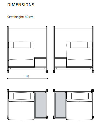 L 116 x P 83 x H 135 cm(hauteur d'assise : 40 cm)