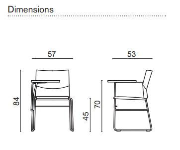 Chaise avec assise capitonné dossier polypropylène, piètement traineau avec tablette écritoire
