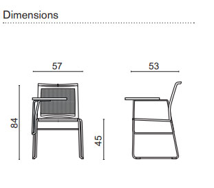 Chaise avec assise polypropylène, dossier résille, piètement traineau avec tablette écritoire à droite