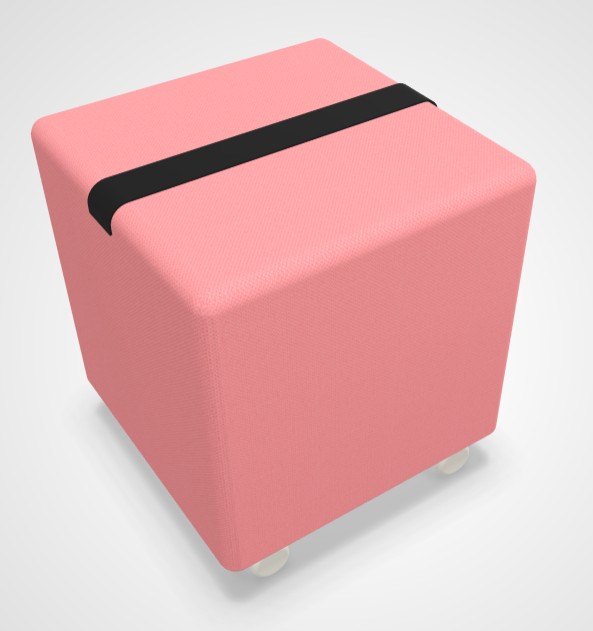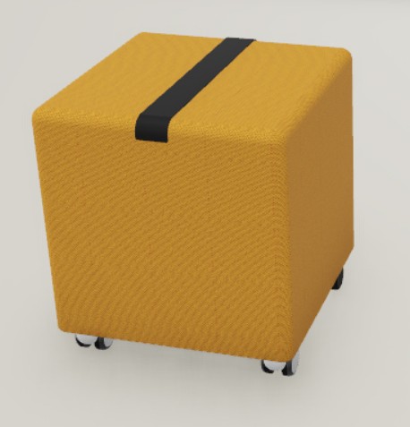 3 Poufs cube carré Yam's tapissés DERBY II** plusieurs coloris au choix avec sangle prise de main sur roulettes blanches Ø 50mm sol textile