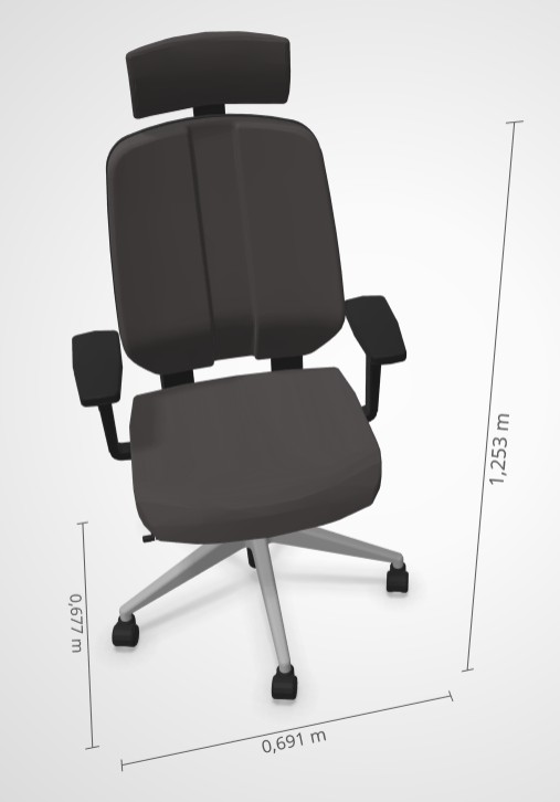 Accotoirs: 4D - Assise: Coccyxiale - Mécanique: SYNCHRON PLUS Summum - Type de piètement: 5 branches synthétique - Couleur du piètement: Alu gris ou Noir - Roulettes: sol textile D65