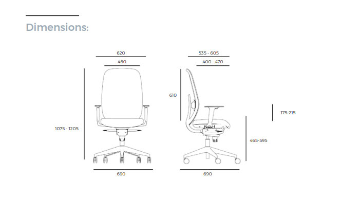 Système synchrone avec support lombaire et accoudoirs 2D