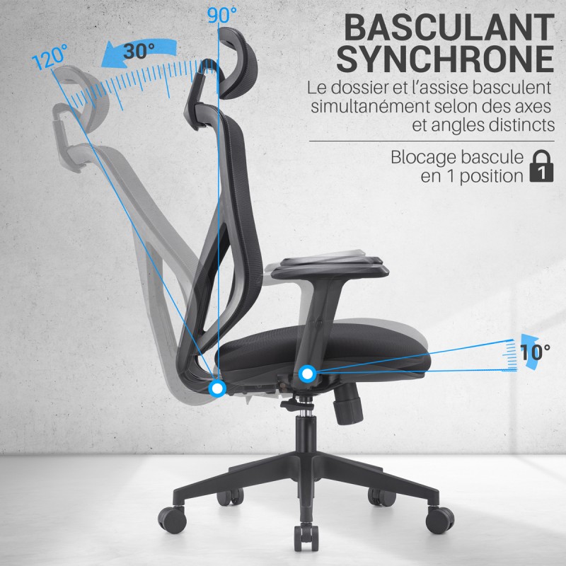 - Mécanisme basculant synchrone : Dossier 30° - Assise 10°