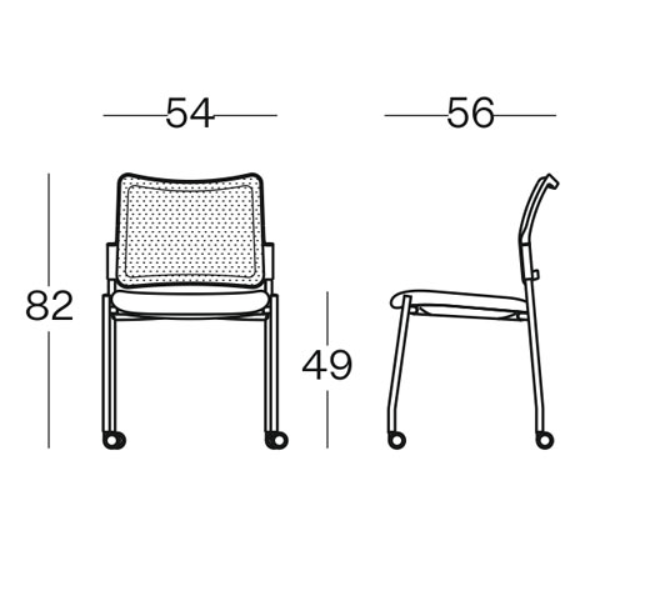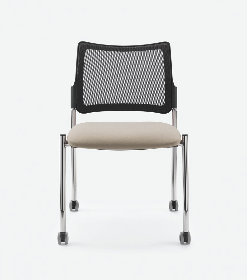 Chaise de réunion MAIA dossier résille et 4 pieds avec roulettes pour sols durs