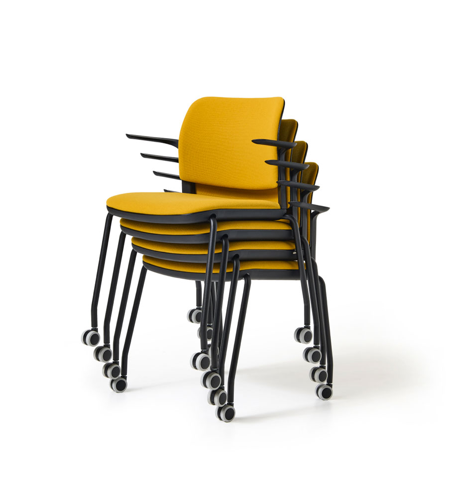 Fauteuil MATCH 3 tapisée avec accoudoirs courts et pieds noirs avec roulettes