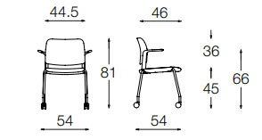 Lot de 4 Chaises MATCH 3 Tapissées sur Roulettes