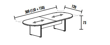 L 300 x P 120 x H 73 cm (2 plateaux de largeur 150 cm)