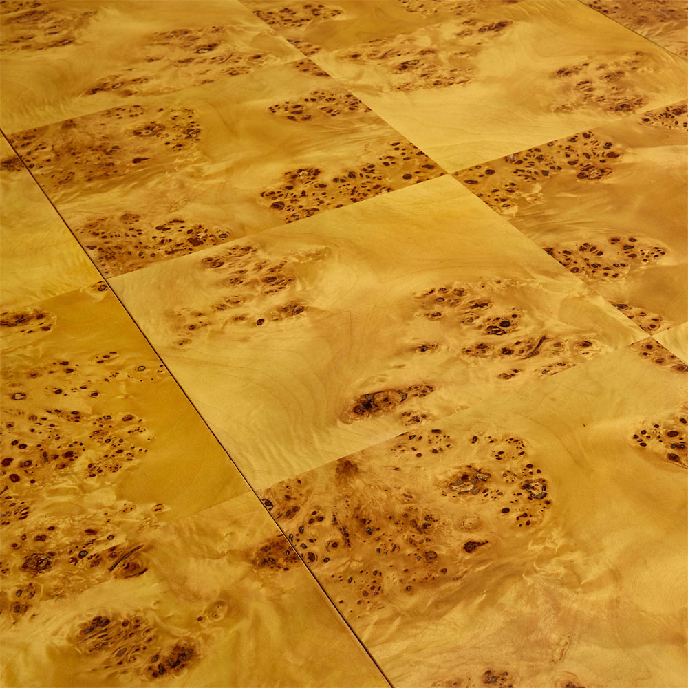Fabriquée en bois de mappa loupe, chaque pièce révèle des nuances miel uniques, sublimées par une finition satinée durable